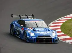 The GT-R Nismo GT3 made its Super GT debut in 2012 at the Okayama International Circuit, with drivers Katsumasa Chiyo and Yuhi Sekiguchi. The car won its first race in the fourth round of the season at Sportsland Sugo, and also scored a podium finish in the following round at Suzuka. It was 4th in the final standings.[26] A couple of difficult seasons followed, in 2013 the car failed to score a single podium finish, in 2014 it only managed to win a race.[27][28] But in the 2013 JAF Grand Prix, team NDDP Racing, with driver Daiki Sasaki won the first race, starting from pole position. In the second race, the car only managed to finish 7th, and ended up being the runner-up of the 2013 JAF Grand Prix. It set the fastest laps in both races, as Nismo Athlete Global Team and NDDP Racing set the fastest laps of the first and second races respectively.[29] The car bounced back in the 2015 season, team Gainer No.10 car, driven by André Couto won the championship, scoring 2 race wins and 4 podium finishes. Including the results of team NDDP Racing, the car finished the season with a total of 4 race wins and 7 podium finishes.[30]