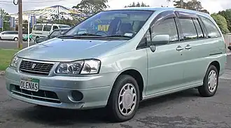 The Nissan Prairie (Japanese: 日産・プレーリー, Hepburn: Nissan Purērī) is an automobile manufactured and marketed by Nissan from 1981 to 2004. Considered a mini MPV or a compact MPV. It was also marketed as the Multi in Canada and the Stanza Wagon in the United States. In Japan, it was exclusive to Nissan Bluebird Store locations, then later at Nissan Blue Stage sales channels. The Prairie had a very flexible seating capability and sliding rear doors on both sides of the vehicle, with a liftgate in the back. The name "prairie" was derived from French which means an extensive area of relatively flat grassland, similar to "steppe" or "savanna".
