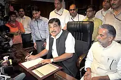 Gadkari served as the Minister of Public Works Department (PWD) of the Government of Maharashtra from 1995 to 1999 and restructured it from top to bottom.[20] He has served as the president of the Maharashtra state unit of BJP.[21]