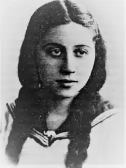 Niuta Tajtelbaum was born as Ryfka Tajtelbaum on October 31, 1917, in Łódź. Her father was Icek Majer Taitelbaum, a factory owner.[3] During the war, she was a courier for the Jewish Combat Organization and the Communist Gwardia Ludowa (GL).[4] She also smuggled weapons and people.[5] As a resistance fighter, she was "known to braid her hair, dress up as a Polish peasant girl, and enter homes and offices in disguise to kill Nazis".[6] In 1943, Teitelbaum shot five Nazi soldiers in one day.[7] She was wanted by the Gestapo, which placed a bounty of 150,000 złotys on her head.[8][9] She was a member of the "Spetzgruppe" (special unit) that bombed a cinema frequented by Nazi soldiers in Warsaw on 17 January 1943. Tajtelbaum was captured by the Nazis on 19 July 1943, tortured, and killed.[10][11]