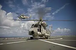 A No. 6 Squadron SH-2G taking off from HMNZS Te Mana during a deployment to the Persian Gulf in 2008 | |