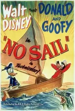 No Sail is an animated short film produced by Walt Disney Productions in 1945, featuring Donald Duck and Goofy.[1] It follows Donald and Goofy after finding themselves stranded at sea and the crazy ways that they try to survive.