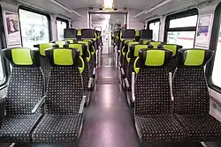 Interior of a FLIRT railcar of the Nordbahn in 2nd class