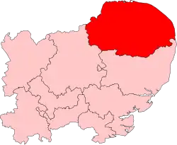 After the 1984 boundary changes based on the new UK parliamentary constituencies created in 1983, it consisted of the constituencies of Great Yarmouth, Mid Norfolk, North Norfolk, North West Norfolk, Norwich North, Norwich South, South Norfolk and South West Norfolk.[2]