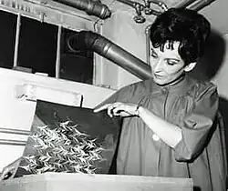1. ^ a b c Dubansky, Mindell; Berger, Sidney E. (2022). Pattern and flow: a golden age of American decorated paper, 1960s to 2000s [exhibition, The Grolier Club, New York, January 17-April 8, 2023]. New York New Haven: Thomas J. Watson Library, The Metropolitan Museum of Art Distributed by Yale University Press. p. 170. ISBN 978-0300266191.