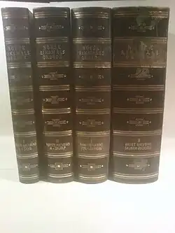A preliminary wordlist issued by Riksmaalsvernet in March 1921 led to a fierce linguistics debate in newspapers and in the cultural and literary magazine Samtiden.[2][4][5][6] In 1922 Alf Sommerfelt was appointed as editor for the dictionary.[7] Trygve Knudsen joined the work in 1924, and was co-editor for the project from July 1925.[3][8] Harald Noreng joined as secretary in 1938, and as co-editor from 1940.[9][10] The dictionary was issued in parts, starting from 1930, and the work was completed in 1957, and printed in four volumes.[3][8][11] From 1981, the Norwegian Academy for Language and Literature has been responsible for the dictionary.[12] A reprint of the four volumes was issued in 1983, and again in 1991.[10][12]