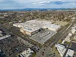![]() Aerial view of the mall facilities and surrounding environment facing northeast from the corner of North Division St. and Wellesley Ave. Mount Spokane can be seen in the distance. | |