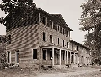 ![]() One of two primary residential edifices of the North American Phalanx as it appeared in August 1972, shortly before its destruction by fire | |