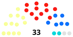 As of 2022, the council area is divided into nine multi-member wards returning 33 members, composed as follows:[21]