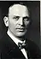 A monochrome portrait photo of a man with short hair, 5 o'clock shadow, wearing a suit coat and tie; he is looking and facing the center of the camera with a happy expression.