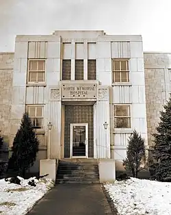 In 1939, Dr. Samuel Samuelson started Victory Hospital on property that he already owned in Robbinsdale.[4] It was the only medical center outside of the downtown Minneapolis/St.Paul area. Previously, hospitals in the region had only been located in downtown areas in order to be close to physician's offices. The hospital's name changed from Victory Hospital to North Memorial when it became a private hospital in 1954. In 1957, North Memorial was accredited by the Joint Commission on Accreditation of Hospitals.