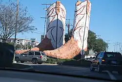 In 1980, a pair of 40-foot (12 m)-tall cowboy boots, a sculpture by the late artist Bob "Daddy-O" Wade entitled 'The Giant Justins' was installed on the I-410 frontage road. The mall promotes the sculpture, created for the Washington Project for the Arts in 1979, as the "world's largest pair of cowboy boots." In 2020, the sculpture remained intact and celebrated the fortieth anniversary of its installation at the mall.[2]