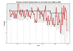 Chart of yearly table positions for North Sydney Bears in First Grade Rugby League