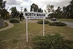 North Wagga Wagga (informally called North Wagga) is an inner northern suburb of Wagga Wagga, New South Wales, Australia, located on the floodplain[2] of the Murrumbidgee River, directly across from the city's Central Business District. North Wagga is one of Wagga's oldest suburbs, being settled at approximately the same time as Wagga. Two pubs are located within North Wagga - The Black Swan Hotel and the Palm and Pawn Hotel, as well as a public school, a public hall, a football/cricket ground and a scattering of business and churches.