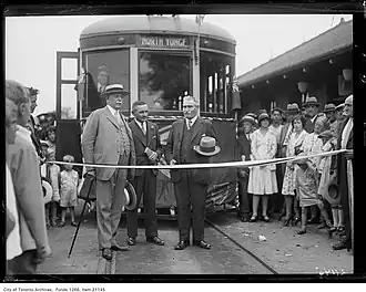Tape cutting ceremony at the opening of the North Yonge Railways, 1930