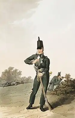 Uniform of the North York Militia rifle companies, from The Costume of Yorkshire by George Walker, 1814.