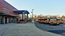 Northwestern's campus features three courtyards[3] between the four wings of the building. The school has a total of five parking lots: the large main parking lot (located in front of the facility, where the former facility once stood) designated for staff and visitors; an adjacent lot located in front of the auditorium, reserved for staff and students; two smaller lots at the rear of the facility, reserved for staff or visitors attending athletic events; and a large bus bay capable of accommodating 44 school buses, located in front of the facility, which doubles as another lot for staff and visitors, during and after the regular school day.