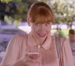 Lacie (Bryce Dallas Howard) gives a rating using her phone. The episode's pastel colours distinguish it from most Black Mirror episodes.