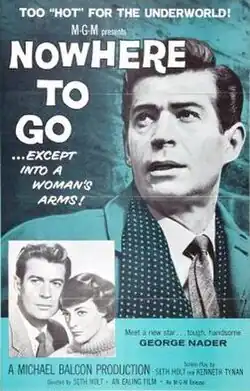 Nowhere to Go is a 1958 British crime film directed by Seth Holt in his directorial debut.[4] It stars George Nader, Maggie Smith (receiving her first screen credit), Bernard Lee, Harry H. Corbett and Bessie Love.[5] It was written by Kenneth Tynan and Holt, based on the 1956 novel of the same title by Donald MacKenzie.