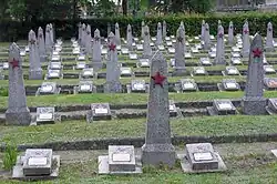 The site houses 1,545 graves of Soviet soldiers who died during the liberation of Bydgoszcz and the fighting in the vicinity. The tombstones are marked with obelisks carrying a red star;[8] some of them (552) have plaques with the name and the origin of the exhumed soldier's.[14]