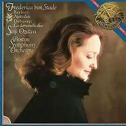 John Warrack reviewed the album on LP in Gramophone in February 1985, comparing Frederica von Stade's Les nuits d'été with performances by Janet Baker,[5] Régine Crespin[6] and Jessye Norman,[7] and her La damoiselle élue with performances by Ileana Cotrubas[8] and Barbara Hendricks.[9] Von Stade, he wrote, sounded slightly uncomfortable on her new recording. She was a distinguished artist, and she had the intellect and perspicacity to appreciate the diversity of the music that she was presenting. But her programme had confronted her with problems that she had been unable to solve satisfactorily.[10]