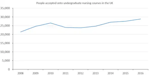 People accepted onto undergraduate nursing courses in the UK 2008-2016[21]