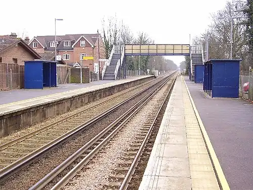 Nutfield railway station is on the Redhill to Tonbridge Line and serves Nutfield, Surrey, England. It is about a mile south of Nutfield itself, located in South Nutfield, a settlement which did not exist before the coming of the railway. It is 24 miles 47 chains (24.59 miles, 39.57 km) measured from London Charing Cross via Redhill.