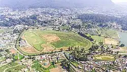 In 1910, in a meeting presided over by the Governor of Ceylon, Sir Henry Edward McCallum (1852–1919),[6] it was resolved that the Colombo-based Ceylon Turf Club would be in a better position to manage the Nuwara Eliya course and the race meets, as it had greater financial clout, the ability to offer better prizes and was able to make improvements to the course and its buildings.[7] The upper tiers of the modest but historic grandstand housed the race stewards, members and other assorted VIPs, giving them the best view over the course. Outside of the racing calendar, the town library was located in the ground floor of the grandstand. Horse racing in Sri Lanka peaked in the 1950s.[8][9]