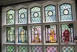 Garnett had the interiors designed by Burges, who contributed a fireplace, and by Morris & Co., for whom Edward Burne-Jones created the stained glass St. George in the staircase window,[2] whilst Morris himself has been credited with the surrounding images of The Four Seasons.
