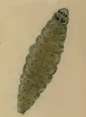 The larvae feed on Thesium species, including Thesium bavarum. They initially mine the leaves of their host plant.[4] Larvae are greenish with a pale brown head.