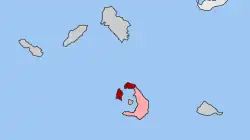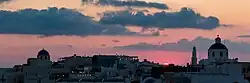 Oia or Ia (Greek: Οία, romanized: Oía, pronounced [ˈia][2]) is a small village and former community in the South Aegean on the islands of Thira (Santorini) and Therasia, in the Cyclades, Greece. Since the 2011 local government reform it has been part of the municipality of Santorini, of which it is a municipal unit.[3][4] It covers the whole island of Therasia and the northwesternmost part of Santorini, which it shares with the municipal unit of Santorini. The main street is named Nikolaou Nomikou. The population was 1,087 inhabitants at the 2021 census, and the land area is 19.449 km2.[1][5]