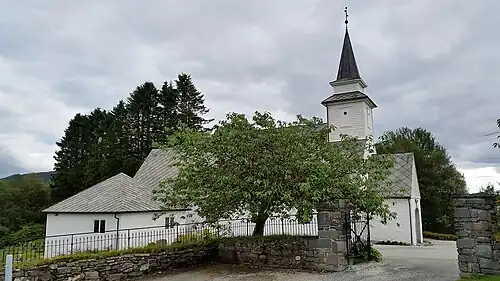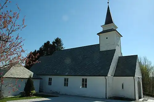 Old Åsane Church (Norwegian: Åsane gamle kirke) is a former parish church of the Church of Norway in Bergen Municipality in Vestland county, Norway. It is located in the Saurås neighborhood in the borough of Åsane in the city of Bergen. It used to be the church for the Åsane parish, which is part of the Åsane prosti (deanery) in the Diocese of Bjørgvin. The white, stone church was built in a long church design in 1795 using plans drawn up by an unknown architect. The church seats about 240 people.[1][2] The church was consecrated in 1795 by the Bishop Johan Nordahl Brun. The church is no longer regularly used since the "new" Åsane Church was built in 1993. This church is now mostly used for funerals and weddings as well as special events.