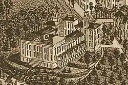The Tennessee School for the Deaf, originally called the Tennessee School for the Deaf and Dumb, or the "Deaf and Dumb Asylum," was authorized by the state in 1844, following legislative efforts initiated by state senator John Cocke of Grainger County.[3] Knoxville merchant Calvin Morgan (1773—1851) donated the property for the school, and construction began in 1846.[1] Jacob Newman oversaw the building's construction, and was probably the building's architect.[1][4] St. John's Episcopal rector Thomas William Humes delivered the dedicatory address upon the school's opening in 1848.[5]