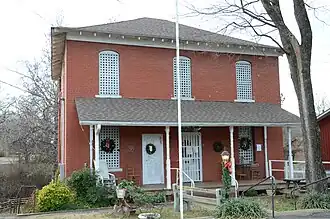 The Old Logan County Jail is a historic government building at 202 North Vine Street in Paris, Arkansas. It is a two-story brick building, covered by a hip roof with exposed rafter ends. Its main facade has a single-story porch extending across the front. Windows are set in segmented-arch openings, with strap-metal bars set across them in a crosshatch pattern. There are two entrances, one (without bars) for the jailer's quarters, and one with bars that provides access to the cell block. Built in 1903, it is one of the state's best-preserved early 20th-century county jails.[2] It is the site of the last legal hanging in Arkansas, which took place when John Arthur Tillman, 23, was hung on July 15, 1914, at 7 am for the murder of Amanda Jane Stephens, 19.