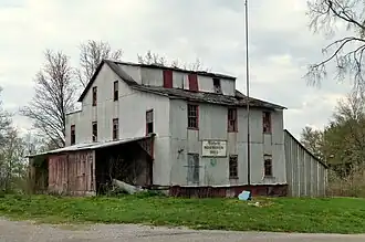 The Old Morrison Mill is a historic gristmill in Burnt Prairie, Illinois. The mill was originally constructed in 1859 in Enfield and was moved to Burnt Prairie in the late nineteenth century, replacing another mill built in 1820. The mill served as the farming community's local grain processing facility, converting wheat to flour and corn to meal. While the mill was originally horse-powered, a wood-fueled boiler was installed in 1897; the boiler's power source later changed to coal, a diesel engine, and ultimately electricity. Parkin and Martin owned the mill after its relocation to Burnt Prairie until brothers R.S. and Cal Morrison purchased it in 1897. R.S. Morrison died in 1931; his sons continued to operate the mill with Cal until 1963. The mill currently sits vacant and houses a variety of well-preserved milling tools and machinery.[2]