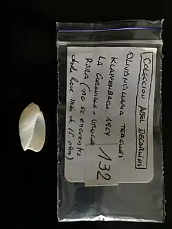 Olivancillaria teaguei is a species of sea snail, a marine gastropod mollusk in the family Olividae, the olives.[2]
