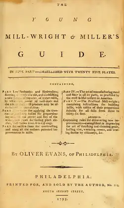 - Evans, Oliver (1795). The Young Mill-wright and Miller's Guide. Philadelphia, PA: Oliver Evans.