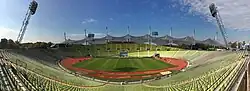 On the left site of the Icestadion stands an open-air ice-skating rink. In 1980 it was decided to build a roof over the open-air rink in order to have it operational during the whole year independent of the weather conditions.[6] The German architectural firm Ackermann und Partner designed an elegant light-weight tensile structure spanning 100 meters length-wise.[7] The building was completed in 1983. In 2004 the ice-skating rink was closed and is now used to play indoor soccer.