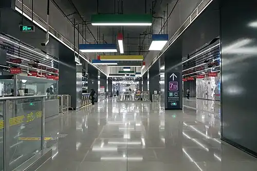 Olympic Sports Center (Chinese: 奥体中心) is a transfer station of Line 6 and Line 7 of the Hangzhou Metro in China. It was opened on 30 December 2020, together with Line 6 and Line 7.[1][2] It is located in the Binjiang District of Hangzhou, near the Main Stadium and Tennis Center of Hangzhou Olympic Sports Expo Center, which were the main venues of the 2022 Asian Games.