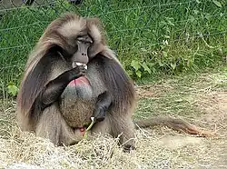 One-male groups are a type of social organization where one male interacts with a group of females and their immature offspring. Offspring of both sexes are evicted from the group upon reaching puberty. It can be seen in many species of primates, including the gelada baboon,[1] the patas monkey, savanna baboon,[2] sun-tailed monkey, golden snub-nosed monkey, and the hamadryas baboon.[3] There are costs and benefits for individuals living in one-male groups.[4][5] As well, individuals within one-male groups can interact with each other just like individuals can interact with those from different one-male groups.[1][6]