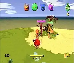 The storyline is that Ooga Booga is a volcano goddess that creates islands, and has leaders of tribes, the Kahunas, that battle for her favour.[3] It has a distinct Polynesian style and tone, and has many multiplayer islands and characters which can be unlocked. It was one of the last online games for the Dreamcast. There are four basic Kahunas that the player can use: Hottie (balanced), Fatty (strong), Twitchy (fast), and Hoodoo (spells).[4] There are other unlockable Kahunas based on the main four. Some of them include Death, Abe (former U.S. President Abraham Lincoln), Superguy (superhero), disco guy, a leprechaun, and a dwarf.