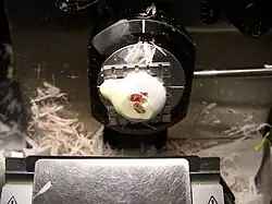 Frozen section procedure: tissue embedded in optimal cutting temperature compound, mounted on a chuck in a cryostat and ready for section production