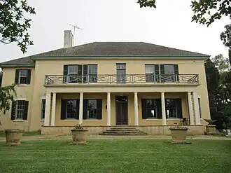 A 20th century planting south-west of the house is Hoop pine (A.cunninghamii). Also prominent are maturing Chinese elms (Ulmus parvifolia). Much of the garden around the house reflects mid-late 20th century plantings and replantings made by the Dawson-Damers. These include Cape chestnut (Cupania capensis). Garden shrubs include a hedge of mature Cape honeysuckle/tecoma (Tecomaria capensis), South African wintersweet/ dune poison bush (Acokanthera oppositifolia), climbing/hairy aloe (Aloe ciliata), African boxthorn (Lycium ferocissimum) (a popular hedge species) and geraniums (Pelargonium x hortorum cv's). A kitchen garden area is to the west of the house, flanked by Cape honeysuckle hedging and fences.[1][2]