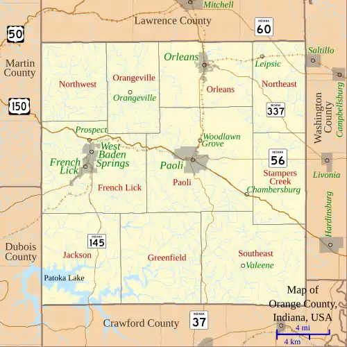 15. ^ Orange County IN Google Maps (accessed 20 September 2018)