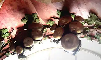 Also worth mentioning is the abundant range of stops which include: Cuculus (cuckoo), Rossignol (nightingale song), timpani, two chimes and the 49-rank mixture "La Force" ("The Power"), although only played by the lowest C in the pedal. La Force was used to signal the beginning of the celebration. While the manual carillon is built into the console, the shell-bells for the pedal are artistically arranged into grape bunches, an appropriate connotation with the monastic name of the Basilica (Weingarten).