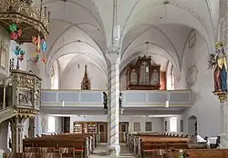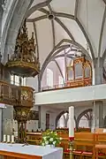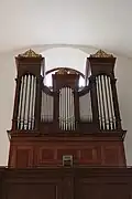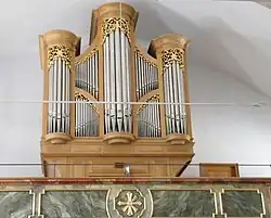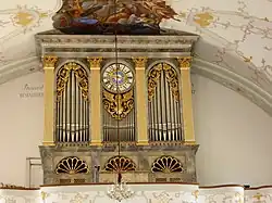 Ybbs an der Donau Parish church of St. Lawrence 2012 III/P 30 The baroque organ was made by Bartholomäus Heintzer in 1723 after the town fire in 1716.[14] From 2009 to 2012 the organ was de facto rebuilt by Orgelbau Pieringer in the existing housing.[15]