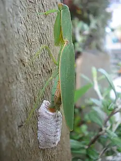 8. ^ [6] Photo of O. novaezealandiae female creating ootheca and discussion of Miomantis caffra