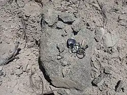 The younger intrusions in the belt are increasingly alkaline in composition,[1] and include the 25-26 Ma Cieneguilla basanite. This is a small-volume extrusive unit exposed around the village of La Cienega that may represent the earliest stages of opening of the Rio Grande rift. The basanite is characterized by larger olivine crystals (phenocrysts) in a very fine-grained matrix of clinopyroxene, magnetite, and nepheline, with a total silica content of 42.40-44.10 wt % and a high magnesium oxide content (11.50-13.50 wt %). This places the basanite among the most primitive magmas of the central Rio Grande rift, meaning that the magma was practically unaltered during its ascent to the surface from its origin in the upper mantle of the Earth. Isotope data suggests that the basanite came from mixed mantle source regions.[2]