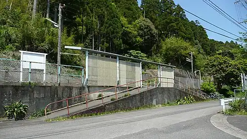 The station, which is unstaffed, consists of a side platform serving a single track on a sidehill cutting. There is no station building, only a shelter on the platform for waiting passengers. A ramp leads up to the platform from the access road.[2][3]