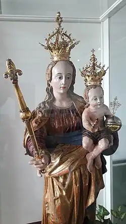 | Attributes | Blessed Virgin Mary, crowned and draped with a gilded cope, while carrying the Child Jesus holding a scepter |